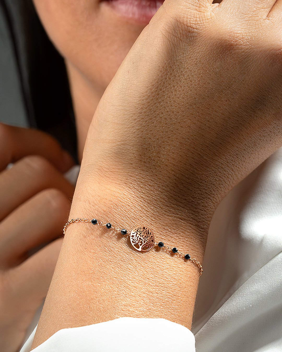 - Matière du bracelet Acier rosé inoxydable et tourmaline noire