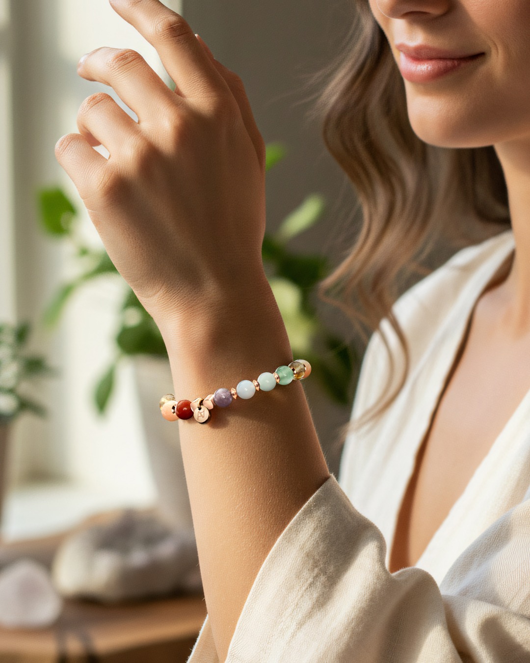 Chaque bracelet est réalisé à la main, à partir de pierres naturelles uniques, dont les nuances et reflets varient. Ces légères différences témoignent de leur authenticité et font de chaque bijou une pièce singulière, porteuse de sa propre vibration.