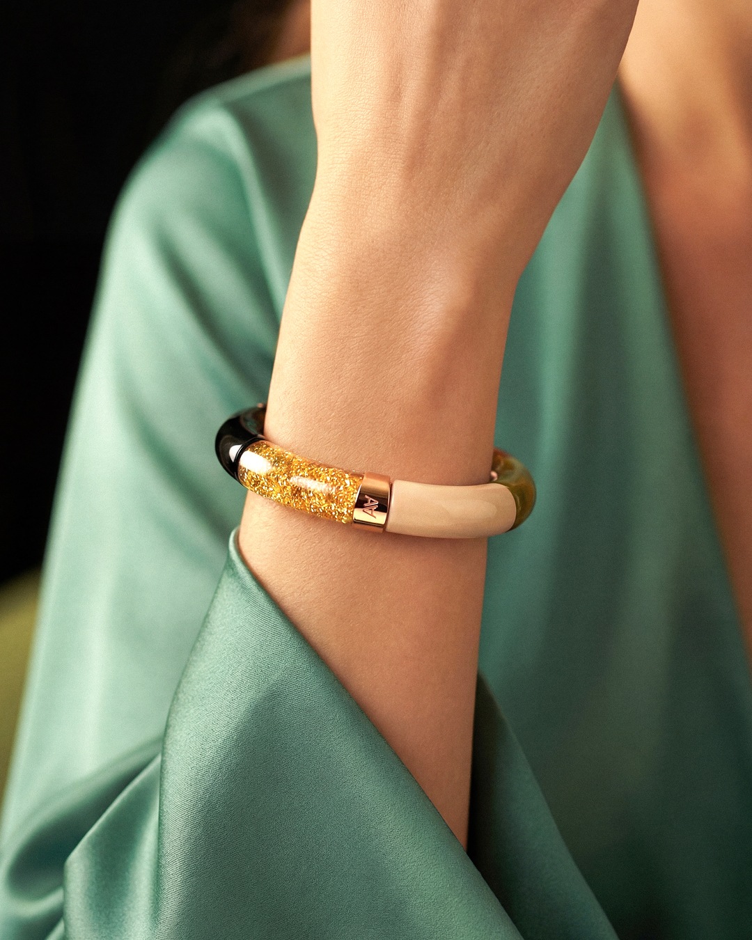 Laissez-vous séduire par ce bracelet en acétate artisanal, symbole d’un luxe accessible et d’une mode responsable.