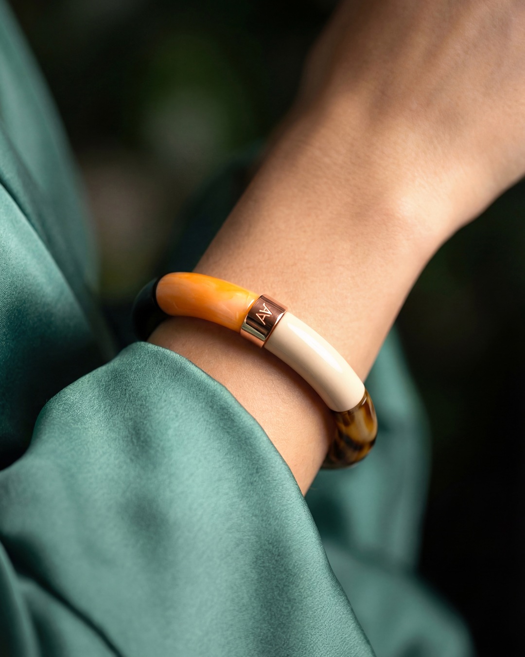 Laissez-vous séduire par ce bracelet en acétate artisanal, symbole d’un luxe accessible et d’une mode responsable.