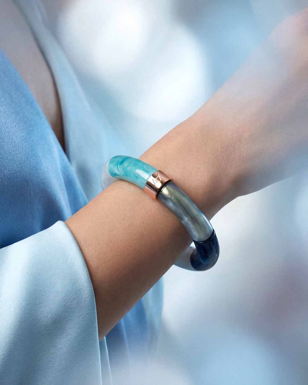 Laissez-vous séduire par ce bracelet en acétate artisanal, symbole d’un luxe accessible et d’une mode responsable.