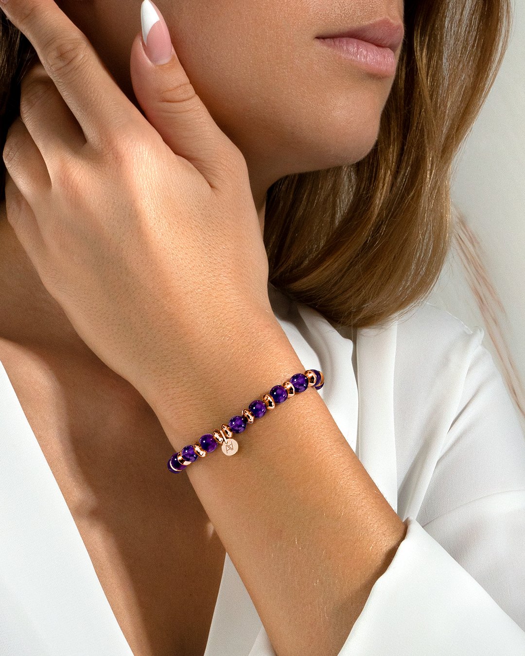 • Matière du bracelet Acier rosé inoxydable et améthyste