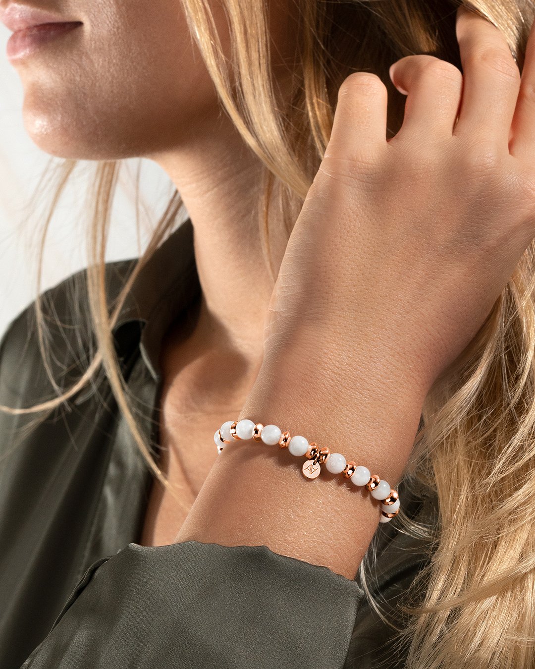 - Matière du bracelet Acier rosé inoxydable et pierre de lune