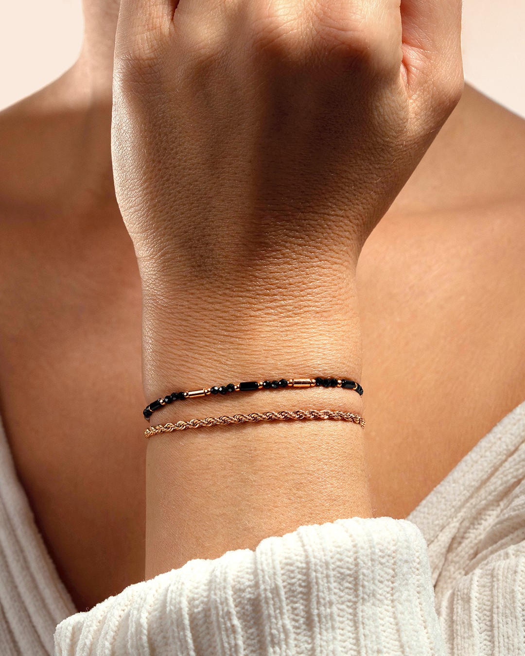 Ce bracelet mesure 15 cm avec une chaînette ajustable en acier de 5 cm, offrant une longueur totale de 20 cm, adapté à tous les poignets.