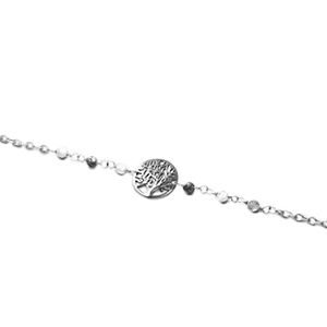 Le bracelet Rimito se caractérise par une chaine élégante ornée de six petites pierres facettés en quartz rutile tourmaliné, mettant en valeur un arbre de vie en son centre.