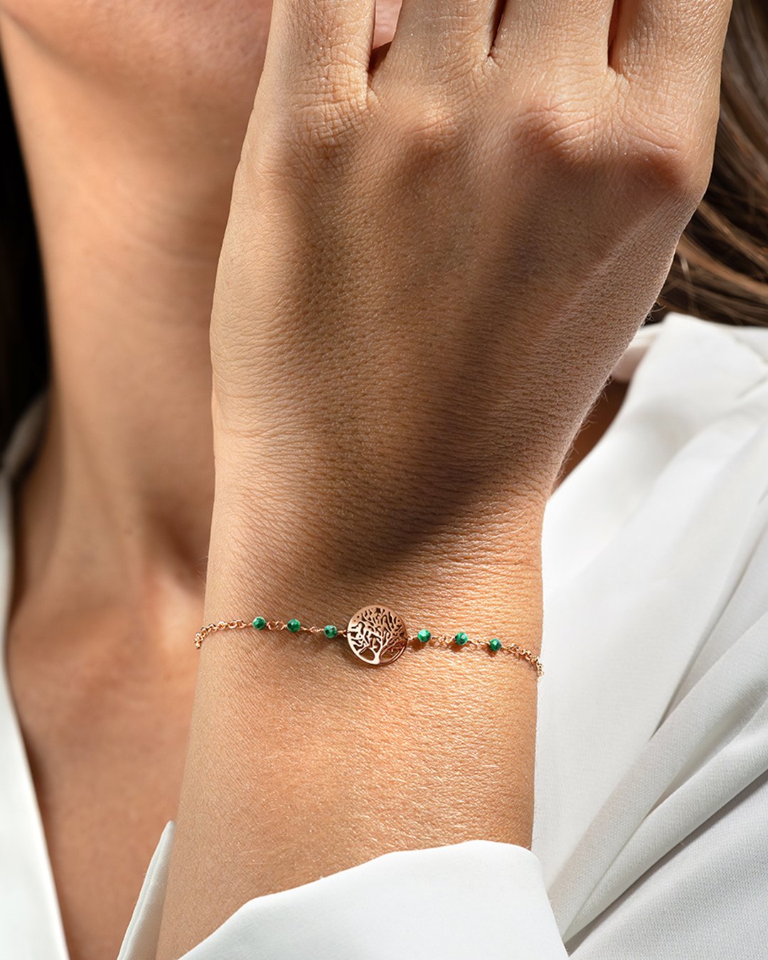 - Matière du bracelet Acier rosé inoxydable et malachite